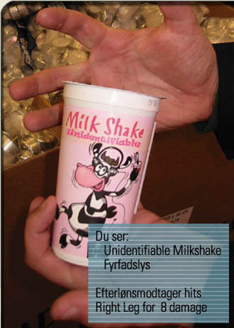 Jeg save'ede (Du kan ikke være for forsigtig i disse dage) og kom omsider ind i The Halls of Spæk, hvor det hele snart skulle foregå. Men en ubehagelig overraskelse ventede mig. Arrangørerne, viste det sig, havde nemlig sørget for en snedig fælde ved indgangen -- pludselig var jeg omgivet af et større antal funktionærer fra Hovedstadens Gas og Vand, og et Amin Jensen-lignende monster, der ved nærmere eftersyn viste sig rent faktisk at være ingen anden end -- Amin Jensen. Det var nu, jeg bittert fortrød at jeg dagen før i stedet for at købe et Smadder HK-spell havde investeret i et nu ubrugeligt Nas på Dansk Metal-spell, som jeg ellers havde regnet med ville redde min røv i mangen pinefuld knibe. Jeg stormede i stedet straks ind på Amin Jensen, vildt klikkende på højre musetast. Dersværre opstod der en grafikfejl, så jeg simpelthen ikke kunne se, hvad der skete i kampens hede -- men da tågerne lettede, lå Amin som bacontern for mine fødder og funktionær dryppede ned fra loft og vægge. Midt i blodet og plamagen fandt jeg en ubrugelig daggert og et stort antal cue-cards til Hit med Melodien, som jeg senere fik en god pris for hos en ældre herre, som jeg først byttede ting med og senere høstede på grusom vis. Men det er en sidehistorie.