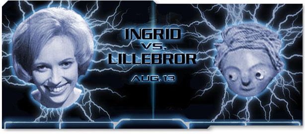 | INGRID vs. LILLEBROR Året er 2873. En amerikansk ekspedition leder efter krymmel, der til den tid er en mangelvare på Jorden. De finder under Antarktis' ismasser en pyramide hvori Ingrid og Lillebror har siddet og snakket om absolut ingenting i 900 år, uden stop.