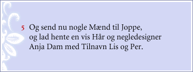 5. Og send nu nogle Mænd til Joppe, og lad hente en vis Hår og negledesigner Anja Dam med Tilnavn Lis og Per.