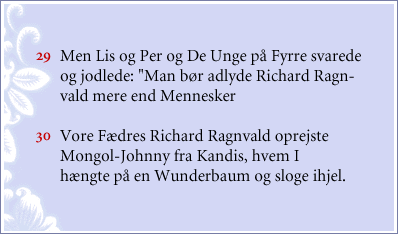 32. Denne Mongol-Johnny fra Kandis oprejste Richard Ragnvald, hvorom vi alle ere Vidner.
