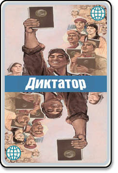 Правила игры «Диктатор» В «Диктатор» играют два или более человек. Цель игры – собрать как можно больше карт, выигрывает тот, кто соберет все карты. Карты раздаются поровну между всеми игроками. Не переворачивая свои карты, каждый игрок кладёт их колодой лицом вниз. Подкидывая монетку, решается кто из игроков будет ходить первым. Игра 1. Каждый игрок берёт карту с верха своей колоды. 2. Игрок, делающий ход, выбирает категорию, в которой он сильнее (например: Лет у власти – 43гг.). 3. Все игроки называют достоинство своей карты в данной категории. Игрок у которого оказывается самая старшая карта, считается выигравшим и получает все карты на столе. Он кладёт карты под низ колоды и делает следующий ход. 4. Игра продолжается до тех пор, пока один из игроков не соберет все карты. Если у двух игроков оказываются карты одинакового достоинства начинается ВОЙНА: игроки берут следующую карту из колоды и называют достоинтство ТОЙ же категории. Если у одного из игроков во время ВОЙНЫ закaнчиваются карты, он продолжает играть последнюю карту. Это повторяется до победы одного из игроков. Тот кто выиграет войну получает все карты на столе и делает следующий ход. Игрок считается проигравшим, когда у него заканчиваются все карты. Игрок считается выигравшим, если он сумел собрать все карты. Старшинство категории «Режим управления» следующее: Сталинизм Деспотия Тирания Фашизм Каннибализм Нацизм Военная диктатура Диктатура Варварство Марксизм Исламский фундаментализм Царство Клептрократия Грабительство |